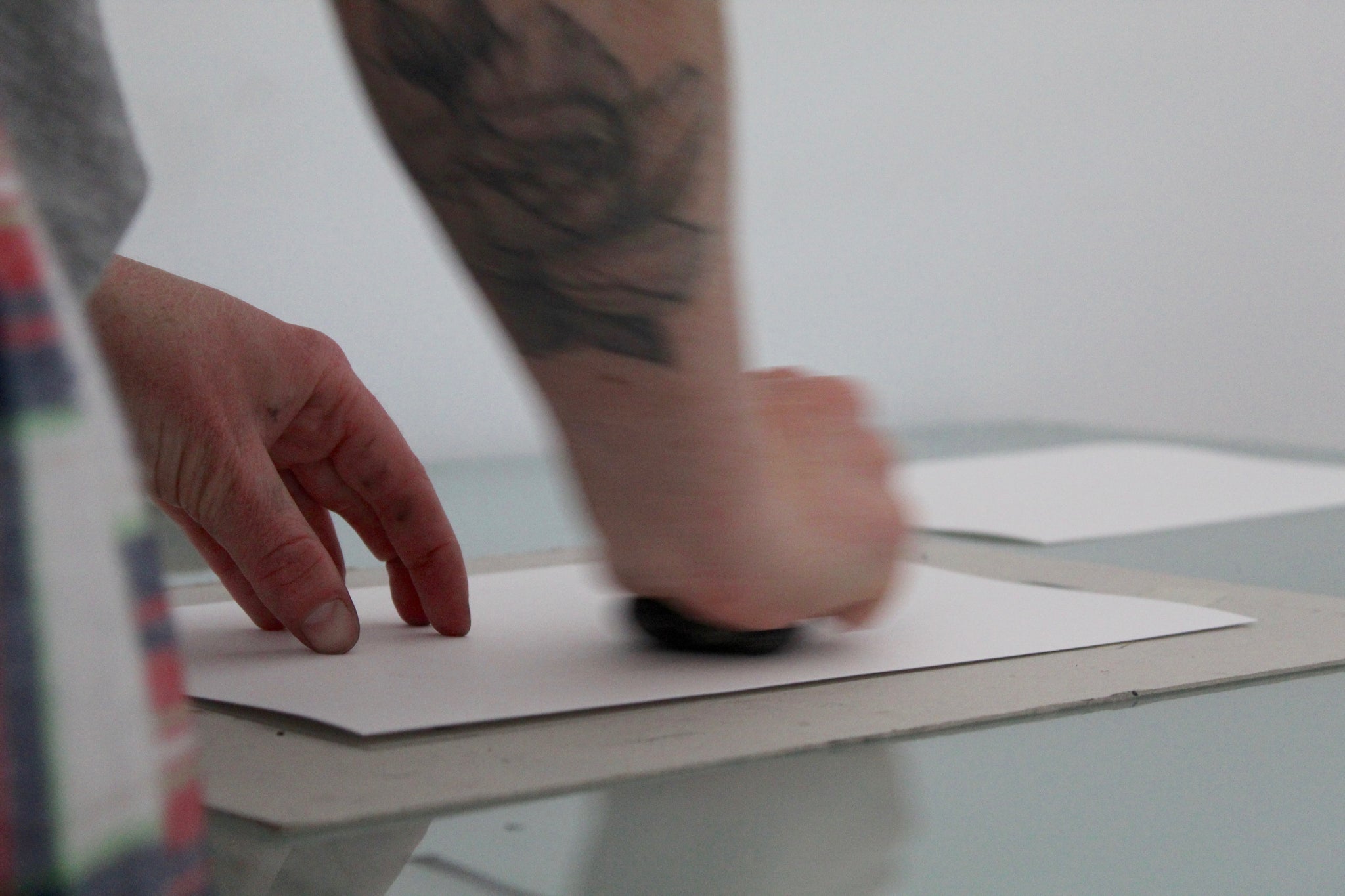 This original linocut print features a celebration of friendship as two women dance together beneath the rain and stars, with the sun and moon smiling above. Crafted by hand from a carved lino block, the handmade design is inked and pressed onto premium printmaking paper. Each print reveals unique textures from the traditional relief technique, highlighting delicate "chatter" marks.